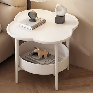 하루 네잎클로버 원형 침대 사이드 테이블 협탁, 화이트
