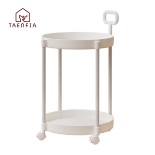 TAENFIKA 원형 사이드 테이블 이동식 2단 티테이블, 69cm, 퓨어화이트