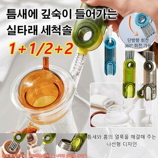 [1+1/2+2] 3in1 플렉시블 병 세척솔 물병 세척솔 틈새 세척브러쉬, 그린*1+1, 2개