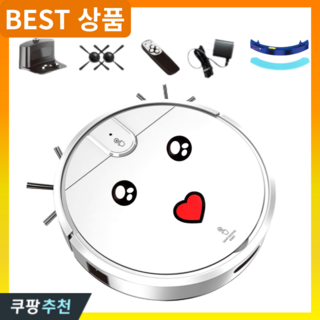 HU LULU 무선 스마트 로봇청소기 자동진공청소 물걸레 찜질 기능 USB충전, 화이트
