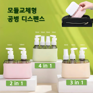 퀸텟 여행용 올인원 디스펜서 4in1 트레블 보틀, 1개, 단일색상(60ml)