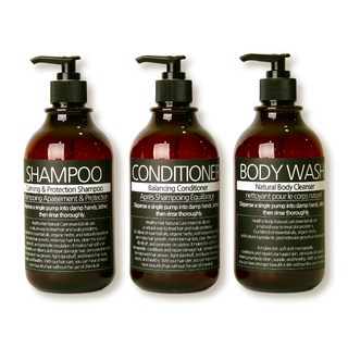 뉴앤룩 욕실 디스펜서 일반형 250ml x 3p + A 라벨 스티커 샴푸 + 스티커 컨디셔너 + 스티커 바디워시 세트, 브라운, 1세트