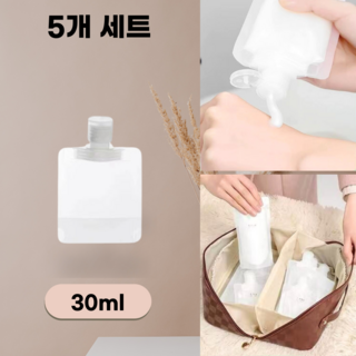 심플하우징 휴대용 화장품 소분 파우치 여행용 투명 용기 세트, 5개, 투명 30ml