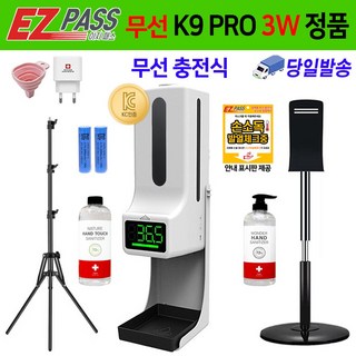 K9PRO 3W 이지패스 젤 액체 겸용 자동 손소독기 겨울철 발열체크 비접촉 디스펜서 열체크, 3W 본품+스탠드(삼각), 1개