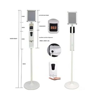 자동온도측정기 손소독기 적외선온도계 비접촉식 자동발열측정기 전자 디지털 발열체크기 비대면 스탠드형 업소용 체 발열감지기 온계 스마트 열화상카메라 음성알림 안내 살균 손소독제 젤 인, 1개, 1개입