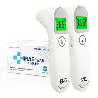 [케이솔루션] 국내산 BNG 비접촉/접촉 겸용 체온계 + 알콜솜 100매입 1개 서비스, 2개