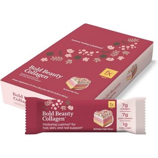 모발 피부 손톱 Fx 콜라겐 + 바이오틴 바* - 7g 식물성 단백질 7g 콜라겐 펩타이드 + 받은 루스트리바 - 유제품 없 생일 케이크 맛 (12바), Bold Beauty Collagen