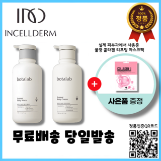 정품QR코드인증 2024년제조 인셀덤 보타랩 슈아멜 바디워시 500ml 바디크림 500ml 대용량 바디 2종 세트+ 현피부과 물광 콜라겐 리프팅 마스크팩, 1세트