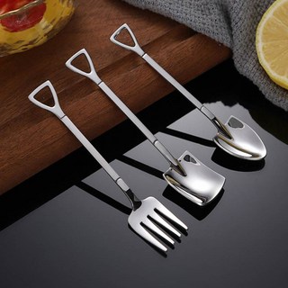1+1+1+1+1+1(6개) 고급형 삽 모양 SUS304 스텐 티스푼 포크 디저트스푼 요거트스푼 디저트포크, 삼각형(2개)+사각형(2개)+포크형(2개), 1개