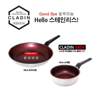 클래딘 이지(CLADIN EASY) 넌스틱 스텐 통삼중 IH 28cm프라이팬 18cm 소테팬 2종 세트, 1개