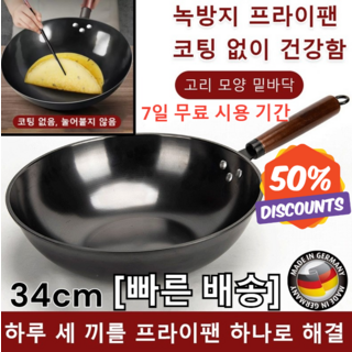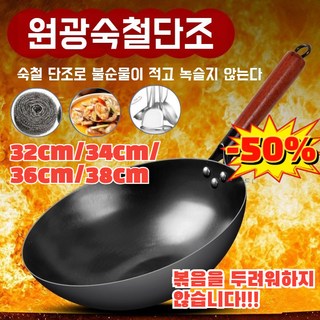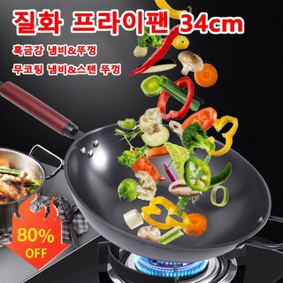 질화 프라이팬독일제 녹방지 프라이팬 건강한 다용도 중식웍 볶음 냄비 대형가마솥 32/34/36/38, 32cm 질화 가마솥 귀 없음, 1개