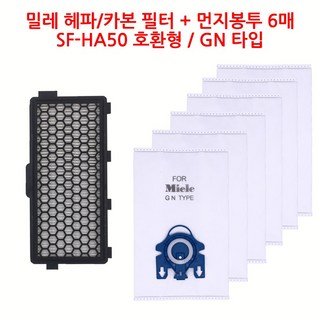 BRANOclean 밀레청소기용 헤파필터 카트리지 SF-HA50 호환형 + 먼지봉투 GN타입 6매