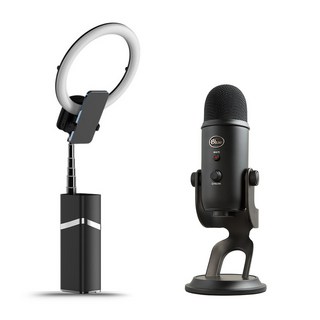 오토케링3 로지텍 블루 예티 마이크 세트 개인방송장비 패키지 충전 접이식 뷰티 온라인 수업 라이브커머스, 핑크, 블랙아웃, 1개