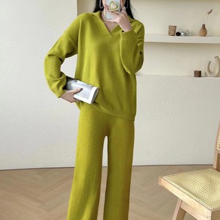 우아글로벌 브이넥 니트 루즈핏 트레이닝 상하 투피스