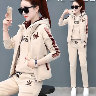 기모 도톰 트레이닝 후드 쓰리피스 여 추동 한국판 따뜻한 패션 세트 여복 트레이닝복 3종세트 캐주얼 후드맨투맨