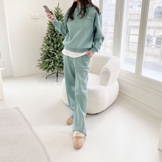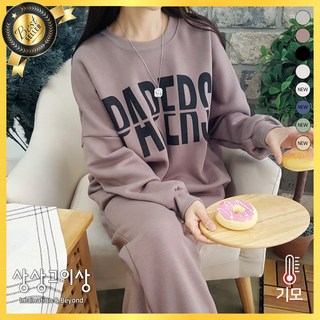 상상그이상 여성용 국내제작 기모안감 레터링 맨투맨 밴딩 조거팬츠 트레이닝 세트