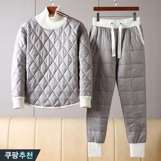 빅사이즈 남성 누빔 패딩 맨투맨 조거팬츠 상하바지 세트 겨울 하이넥 퀼팅 아가일 홈웨어 / 외출용 방한 따뜻한 두꺼운 방한복 니트 폴오버 솜패딩 패딩자켓 밴딩 바지 부드러운 투피스
