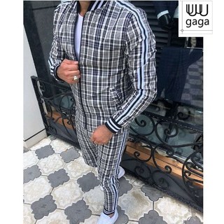 유유가가 남자 스포츠 캐주얼 정장 트레이닝복 다양한 체크무늬 세트