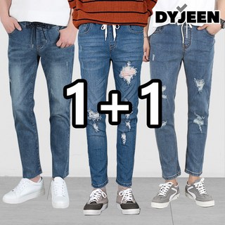 [1+1] 디와이진 남자 밴딩 편한 스판바지 데일리 청바지 찢청 테이퍼드 조거 일자데님 팬츠