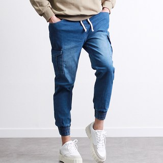 [투뎃] 남성용 워싱 카고 조거 스판 밴딩 데님 팬츠