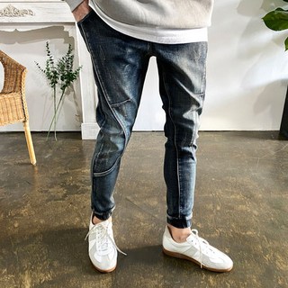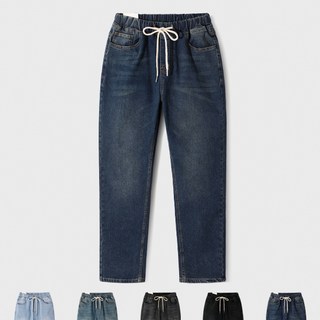 웨일즈 전체스판 빈티지 라인 중청 데님 조거 팬츠 밴딩 청바지[기모 버전 추가]