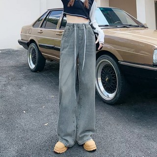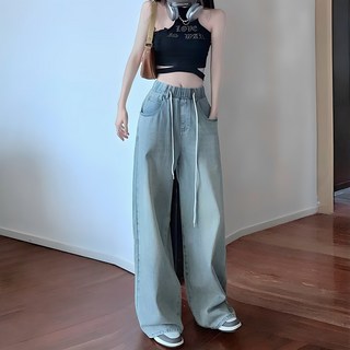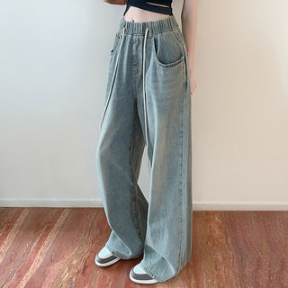 네모엔룩 여성용 와이드힙데님 빅사이즈 루즈핏 힙합 스트릿 허리밴딩 빈티지워싱 청 팬츠 NL