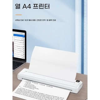 휴대용 프린터기 사진 인쇄 출력 복사기 오류 할당 프린터 무선 A4 용지 소형 가정용 충전식 블루투스 연결 잉크 없는 감열식, 소모품 5권 총 1000장 인쇄 가능