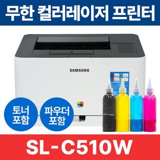 무한레이저프린터 삼성 SL-C510W 컬러 레이저 프린터 풀세트 리필파우더 포함, 단품