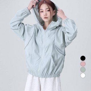 어썸어라운드 여성용 파이핑 후드 바람막이 점퍼