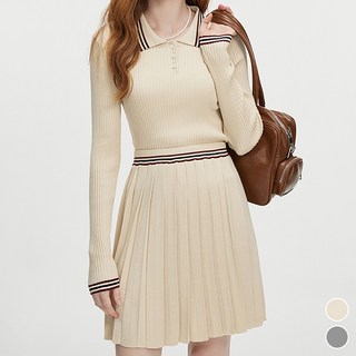메이첼 여성용 베리 배색 니트 상의 + 플리츠 스커트 세트 06604