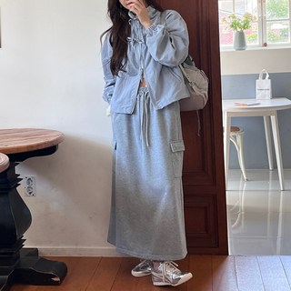 소비품격 여성 데일리 롱스커트 후드 롱치마 캐주얼 룩 상하세트