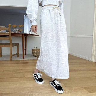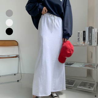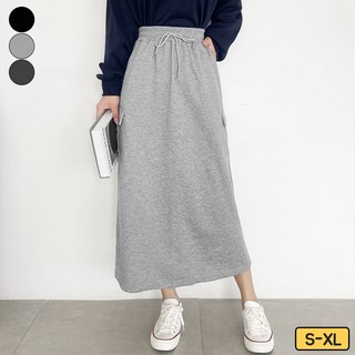 네모엔룩 여성용 쭈리밴딩롱 스트링끈 사이드포켓 트레이닝룩 뒤트임 코튼 롱 스커트 (기모타입추가)