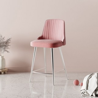 가구느낌 시엘 벨벳 실버바 홈바의자, 핑크, 2개