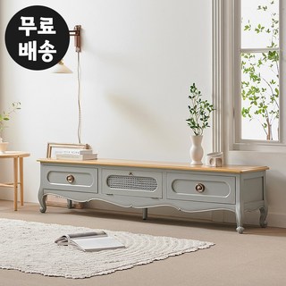 데브 엔틱 마호가니 원목 라탄 와이드 거실장 티비다이 tv장 인테리어(그레이), 그레이