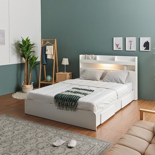 보루네오 코코 LED 3서랍 수납 침대 더블 본넬매트리스 세트, 화이트워시