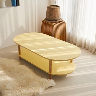 스토리퍼니쳐 LPM 하모니 2단 거실 테이블 타원형 1200 x 600 x 330 mm, 버터옐로우 + 오크