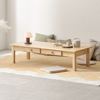 라로퍼니처 몬타 고무나무 원목 좌식 서랍 거실 테이블 소파 좌탁 밥상 1200 1500 1800, 내추럴