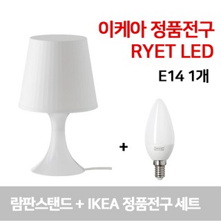 이케아 LAMPAN 람판 탁상스탠드(화이트) + RYET LED E14전구 1개 / 102.842.44, 화이트 (102.842.44), E14 소켓