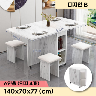 illogicalmall 접이식 식탁 의자 세트 테이블 다용도 가정용 공간활용 원룸, 4인용, 140cm B