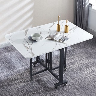 크로스바이 북유럽식 접이식 확장형 폴딩 식탁 테이블, 4인용, 화이트대리석패턴