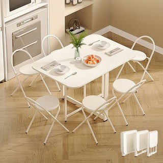 OYEAH 심플 스퀘어 접이식 테이블 다용도 가정용 식탁 화이트, 4인용, 흰색