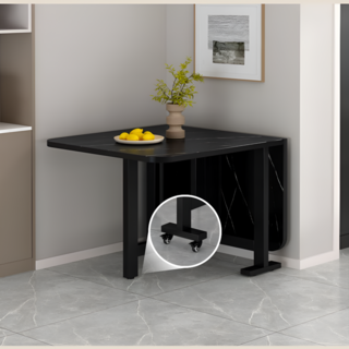 하우니 라운드 와이드 주방 접이식 확장형 윙드 식탁, 6인용, 블랙