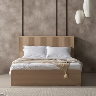 삼익가구 심플 평상형 슈퍼싱글/퀸 침대 + 본넬 매트리스 포함, 디엔_멀바우