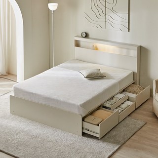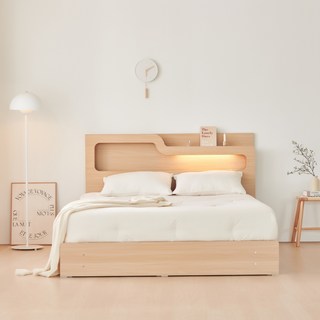 [삼익가구]러버 LED 4단 수납 원목 침대(YS 파워 본넬스프링 매트리스-퀸), 내추럴