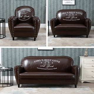 빈티지 소파 가죽 미국 복고풍 카페 휴게실 미용실 대기용 1인용 2인용 3인용, 브라운