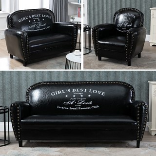 빈티지 소파 가죽 미국 복고풍 카페 휴게실 미용실 대기용 1인용 2인용 3인용, 블랙