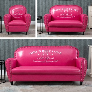 빈티지 소파 가죽 미국 복고풍 카페 휴게실 미용실 대기용 1인용 2인용 3인용, 핫핑크