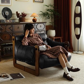 빈티지 소파 인플루언서 쇼파 순원목 1인용쇼파 모던 심플 소파베드 북유럽 스타일 리클라이너쇼파 아메리칸 빈티지 1인쇼파, 빈티지 블랙