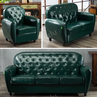 빈티지소파 미국 복고풍 카페 소파 가죽 레트로 북유럽 쇼파 1인 2인 3인, 짙은녹색오일3네일링+프린팅