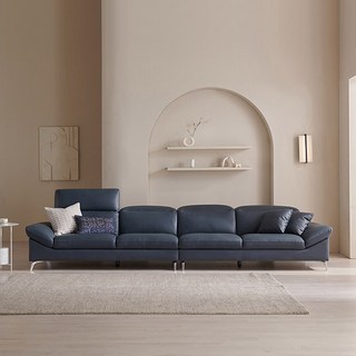 쿠션증정EVENT [삼익가구]에든 헤드틸팅 천연면피 소가죽 4인 6인 카우치형 스툴제외 소파 쇼파, 03. 6인용 소파 (스툴제외), 네이비